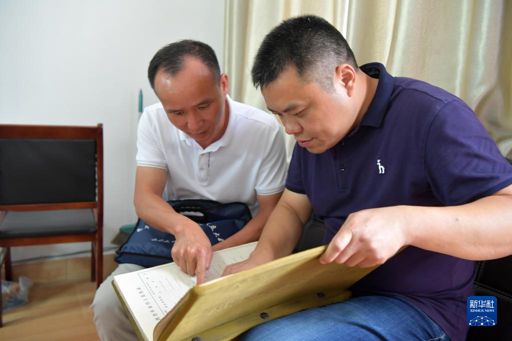 在江西省樂(lè )平市退役軍人事務(wù)局,程雪清(左)在工作人員的幫助下,翻閱江西革命烈士英名錄,查找他要尋找的烈士(7月6日攝)。