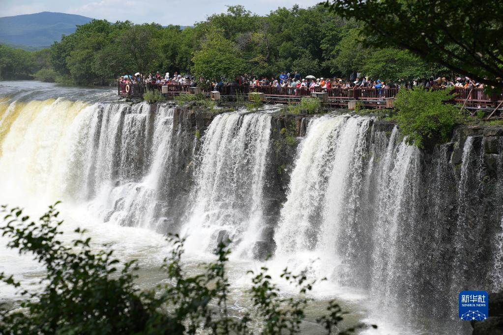 受上游來(lái)水量增多等因素影響,近日,位于黑龍江省牡丹江市的鏡泊湖世界地質(zhì)公園水量持續增加,景區內的吊水樓瀑布出現“三面溢流”壯觀(guān)景象。