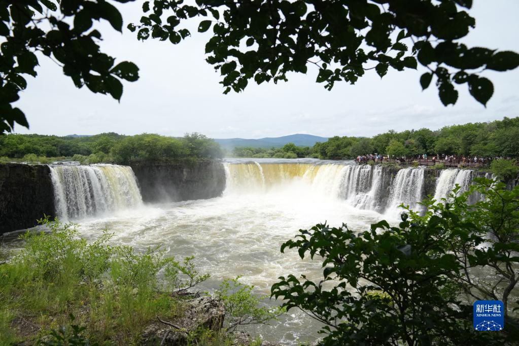 受上游來(lái)水量增多等因素影響,近日,位于黑龍江省牡丹江市的鏡泊湖世界地質(zhì)公園水量持續增加,景區內的吊水樓瀑布出現“三面溢流”壯觀(guān)景象。