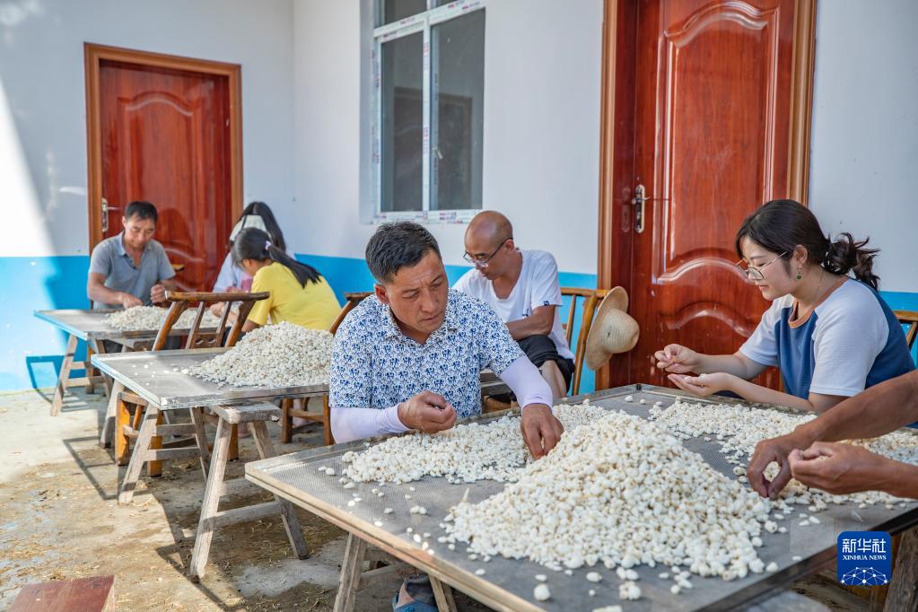 7月14日,在重慶市巫溪縣蘭英鄉西安村,村民對貝母進(jìn)行篩選。