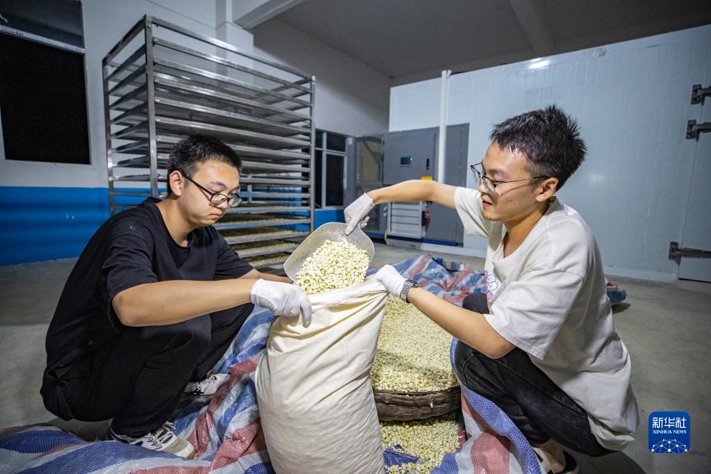 7月14日,在重慶市巫溪縣蘭英鄉西安村,村民將烘干好的貝母裝袋。