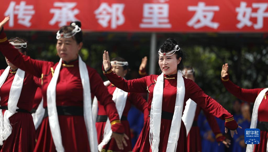 7月26日,查干哈達村村民在睦鄰節上表演舞蹈。