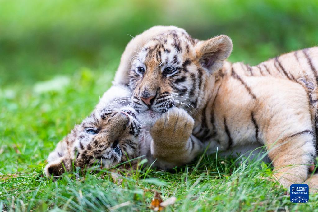 7月29日在橫道河子東北虎林園拍攝的東北虎幼虎。