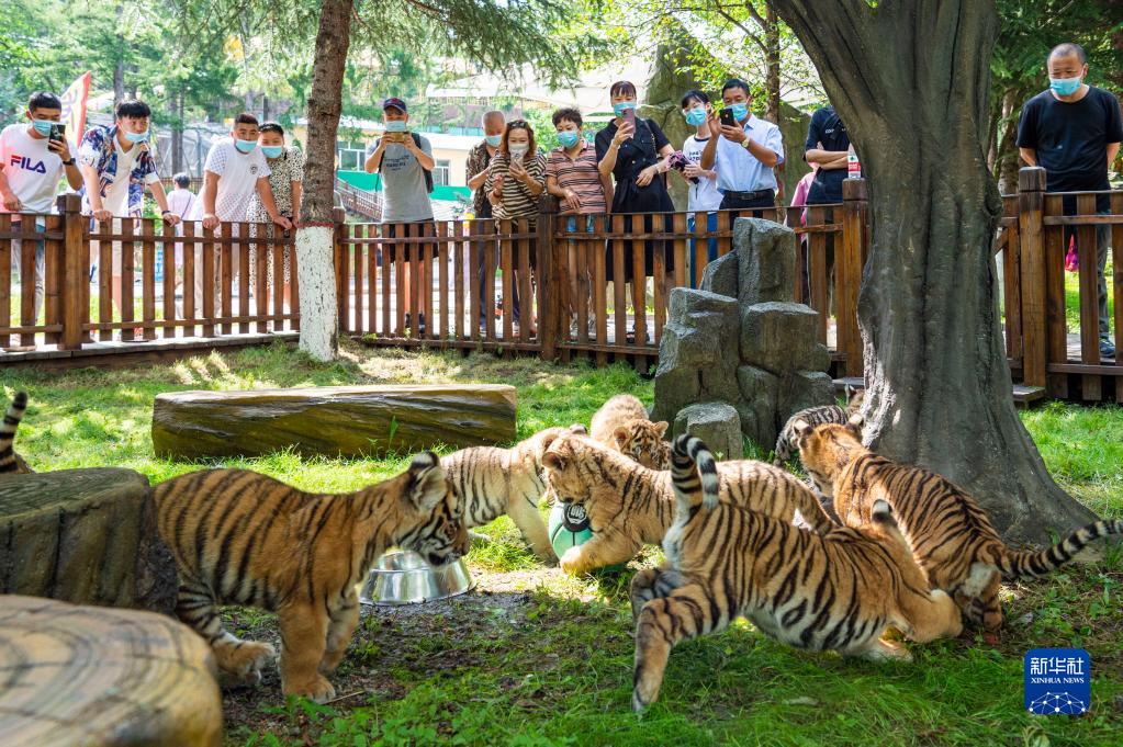 7月29日,游客在橫道河子東北虎林園觀(guān)賞東北虎幼虎。