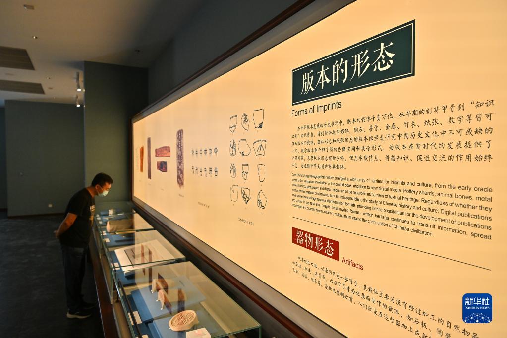 7月30日,一名觀(guān)眾在中國國家版本館中央總館的展廳內參觀(guān)。