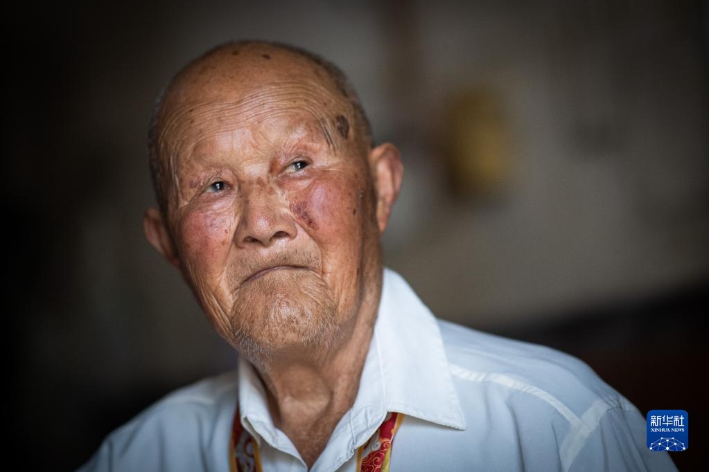 6月30日,在四川省德陽(yáng)市,抗戰老戰士郝校忠講述抗日戰爭時(shí)期的經(jīng)歷。
