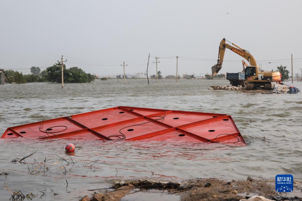 8月4日拍攝的被投放在潰口處的六角沉箱。