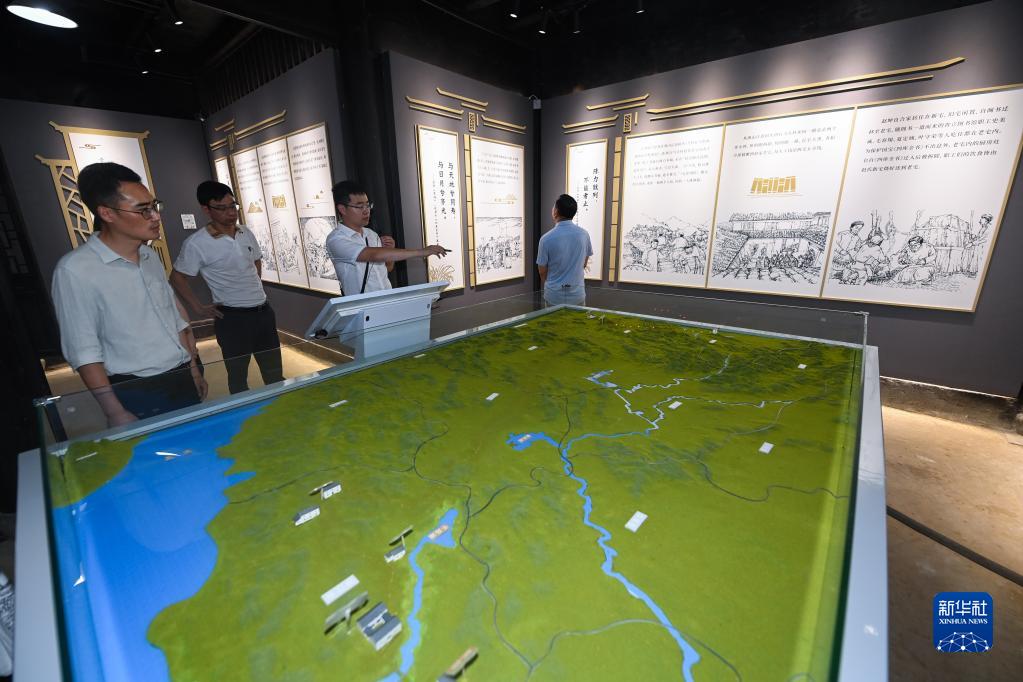 8月5日,參觀(guān)者在“文瀾閣《四庫全書(shū)》抗戰西遷首站研學(xué)中心”觀(guān)看西遷線(xiàn)路沙盤(pán)。
