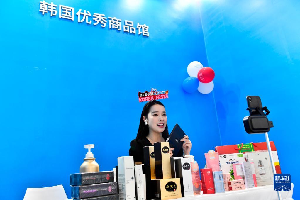 8月5日,在山東省威海市,主播在第二屆韓國(山東)進(jìn)口商品博覽會(huì )上直播帶貨。