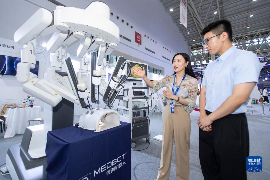8月5日,觀(guān)眾在上海微創(chuàng )醫療展廳參觀(guān)。