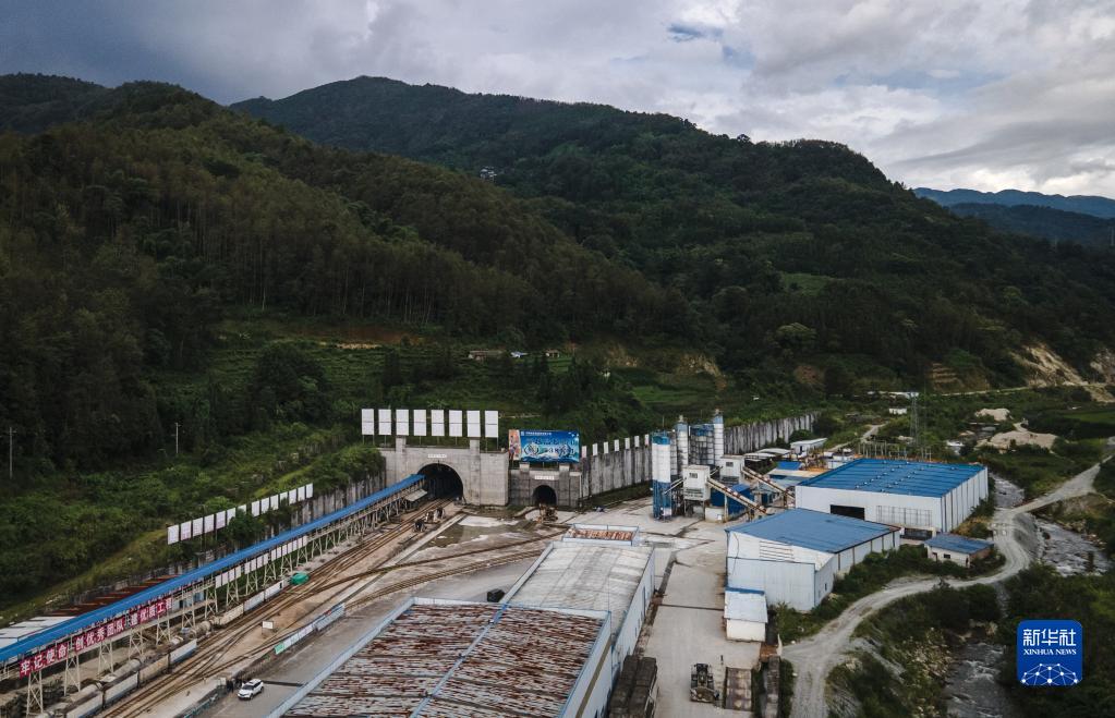這是建設中的大瑞鐵路高黎貢山隧道(出口)(8月4日攝,無(wú)人機照片)。