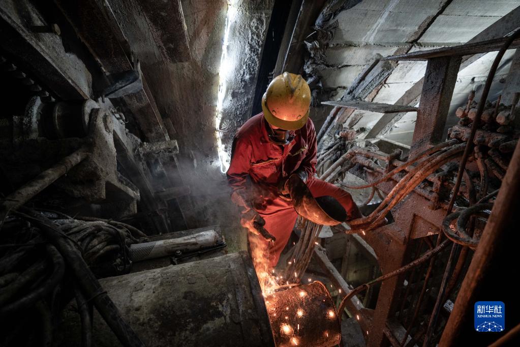 8月4日,在高黎貢山隧道內,掌子面施工人員進(jìn)行焊接作業(yè)。