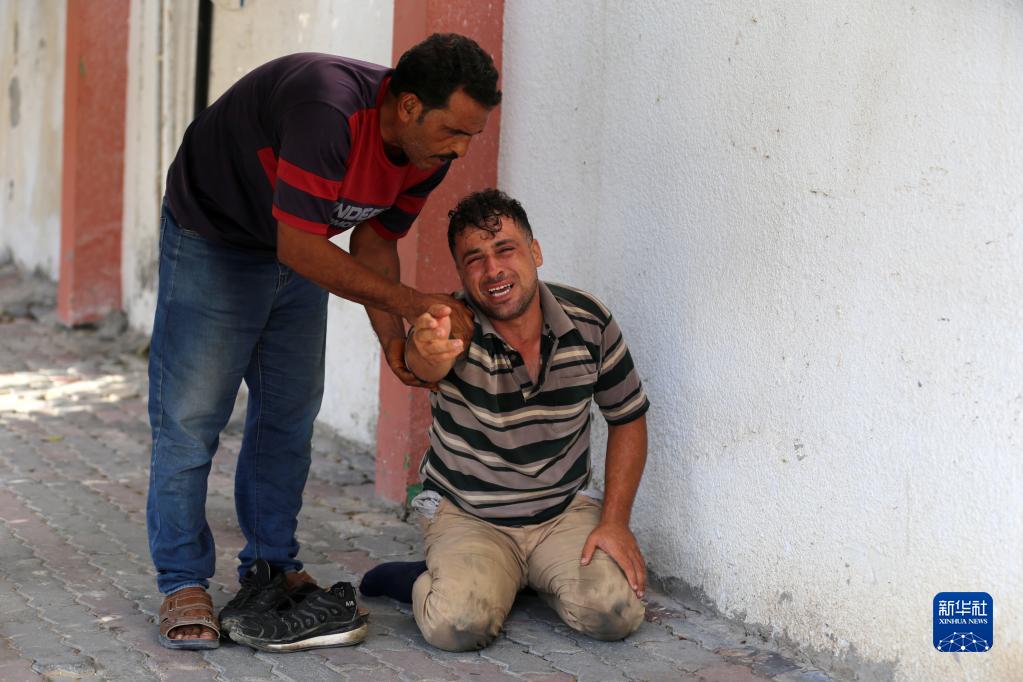 8月5日,空襲遇難者親屬在加沙地帶南部城鎮汗尤尼斯的一所醫院哭泣。