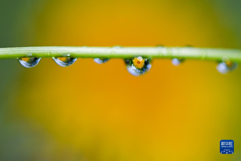 8月1日,在山東省青州市云門(mén)山森林公園,植株上掛著(zhù)晨露。