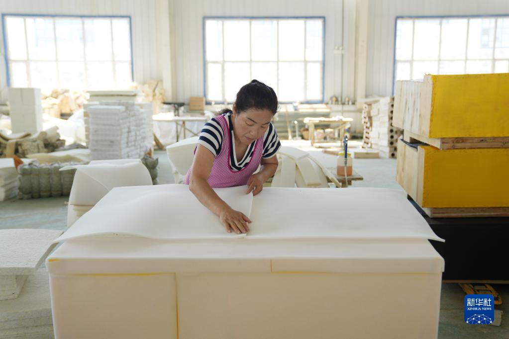 8月4日,在穆棱經(jīng)濟開(kāi)發(fā)區,黑龍江小虎貝貝家具有限公司工人在生產(chǎn)寵物家具。