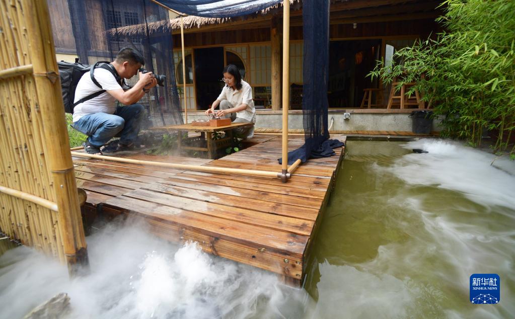 8月6日,游客在貴陽(yáng)市花溪區石板鎮鎮山村“鎮山國際影像周”影展上拍照。