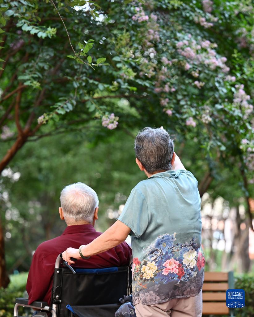 段肇誼(右)推著(zhù)坐在輪椅上的顧偉力賞花(7月30日攝)。今年80歲的段肇誼年輕時(shí)是一名軍醫,在醫院遇到了為勇救戰友而截癱的軍人顧偉力。被英雄事跡深深打動(dòng)的段肇誼,選擇與顧偉力步入婚姻的殿堂。結婚后,段肇誼用柔弱的肩膀扛起了照顧殘疾丈夫的重擔,兩人相濡以沫已走過(guò)50余載時(shí)光。2021年,段肇誼被授予第八屆全國道德模范榮譽(yù)稱(chēng)號。