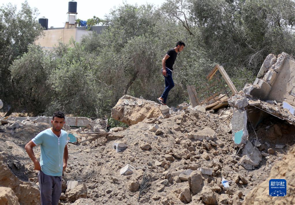 8月6日,人們在加沙地帶南部城鎮汗尤尼斯查看空襲后的廢墟。