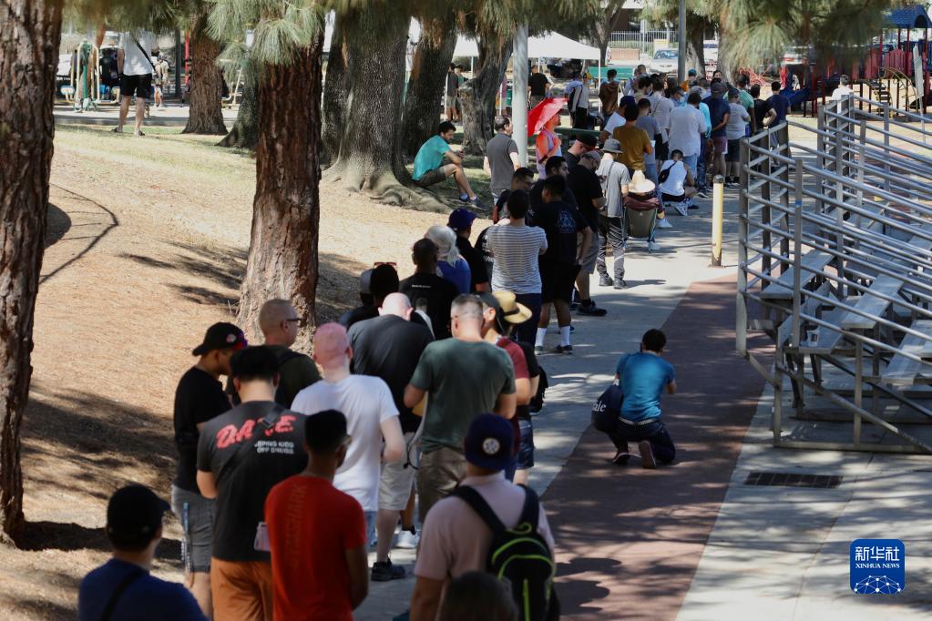 8月6日,人們在美國洛杉磯一處猴痘疫苗接種點(diǎn)排隊。