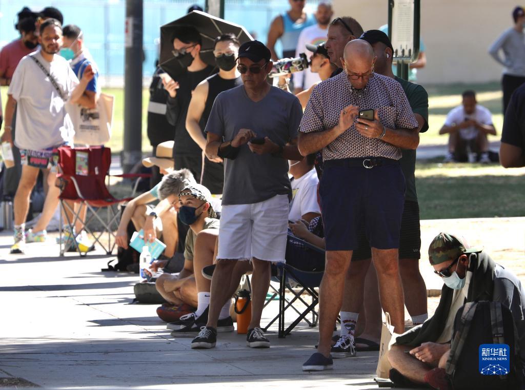 8月6日,人們在美國洛杉磯一處猴痘疫苗接種點(diǎn)排隊。