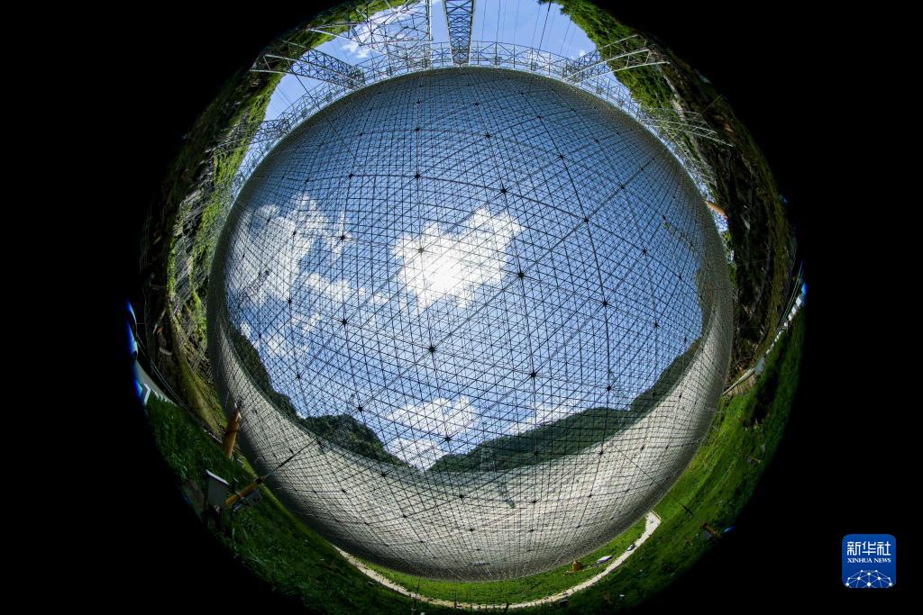 “中國天眼”一景(2022年7月21日維護保養期間魚(yú)眼鏡頭拍攝)。