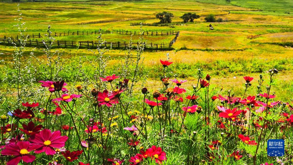 這是魯朗花海牧場(chǎng)景區(手機照片,8月6日攝)。
