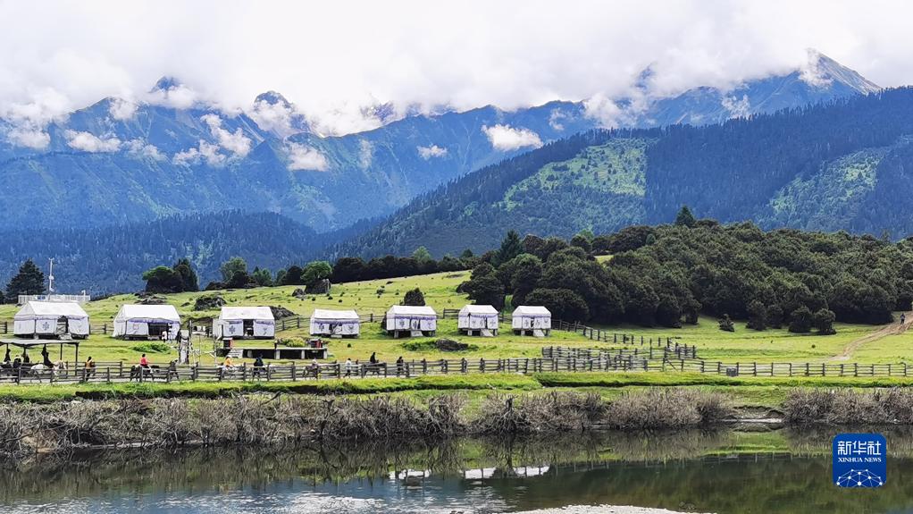 夏日的魯朗鎮,溪水潺潺,鮮花盛開(kāi),藏式村寨點(diǎn)綴其間,勾畫(huà)出一幅恬靜、優(yōu)美的“高原山居圖”。