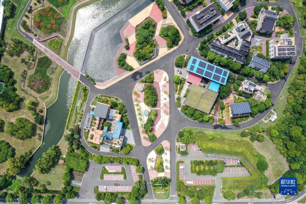 8月7日拍攝的位于武進(jìn)區的江蘇省綠色建筑博覽園景色(無(wú)人機照片)。