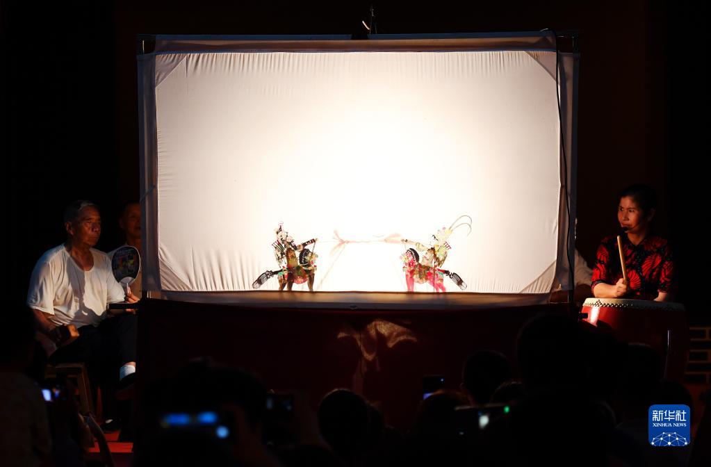 觀(guān)眾在西安周至水街煙火巷子觀(guān)看皮影表演(8月6日攝)。