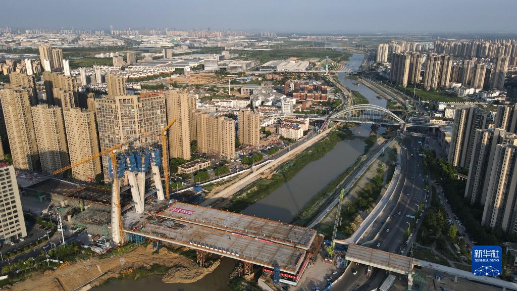 這是主橋貫通后的引江濟淮金寨南路橋(8月7日攝,無(wú)人機照片)。