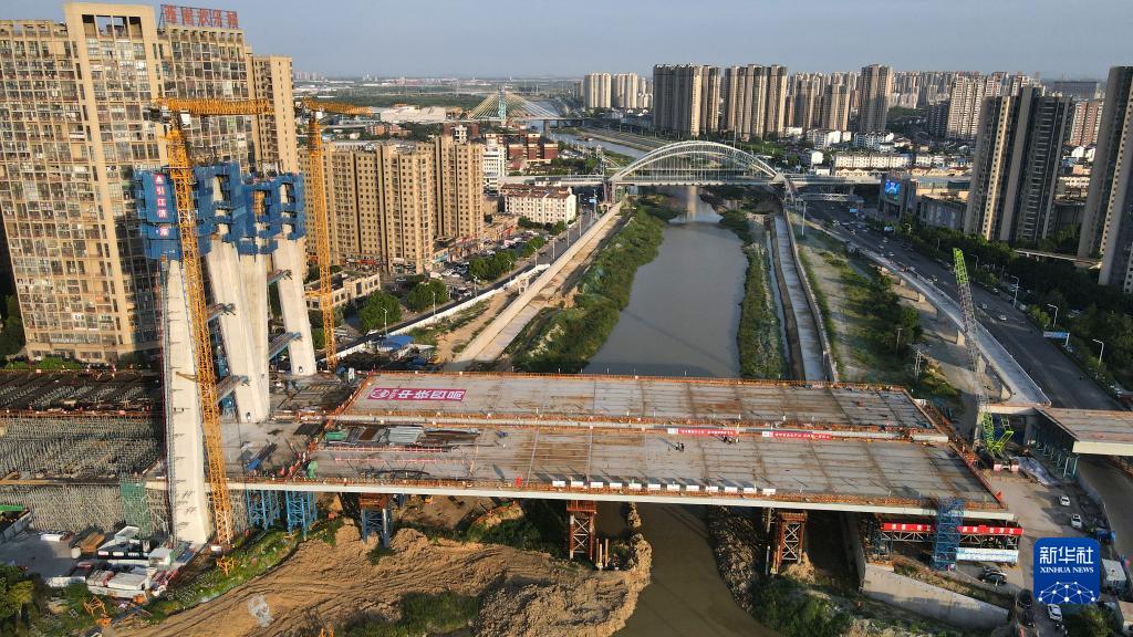 這是主橋貫通后的引江濟淮金寨南路橋(8月7日攝,無(wú)人機照片)。