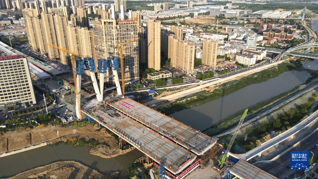 這是主橋貫通后的引江濟淮金寨南路橋(8月7日攝,無(wú)人機照片)。