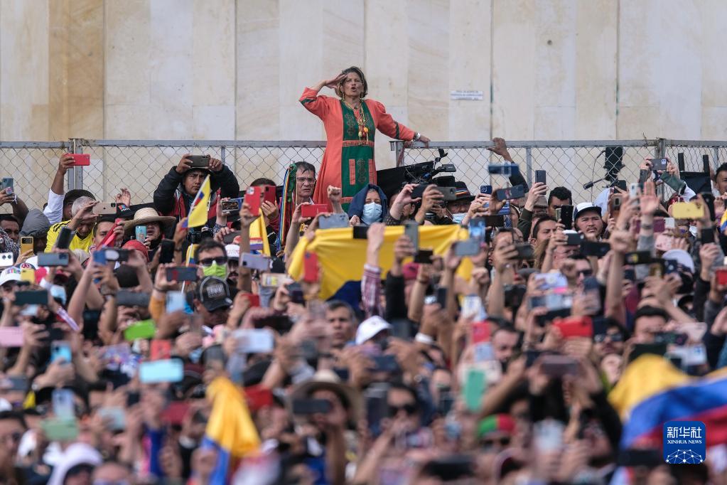 哥倫比亞當選總統古斯塔沃·佩特羅7日在首都波哥大玻利瓦爾廣場(chǎng)宣誓就職。