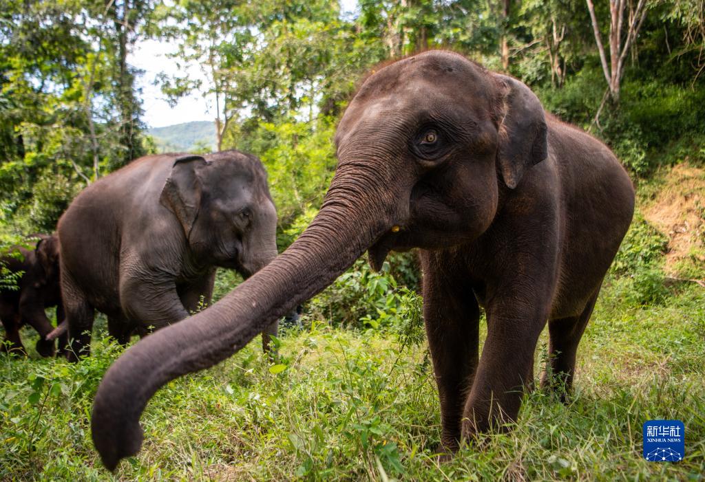 這是在云南西雙版納野象谷拍攝的亞洲象(7月28日攝)。新華社記者 江文耀 攝