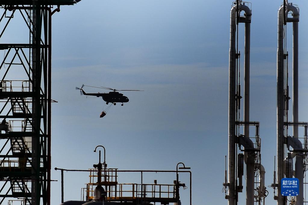 8月8日,在古巴馬坦薩斯省,消防直升機在火災現場(chǎng)作業(yè)。