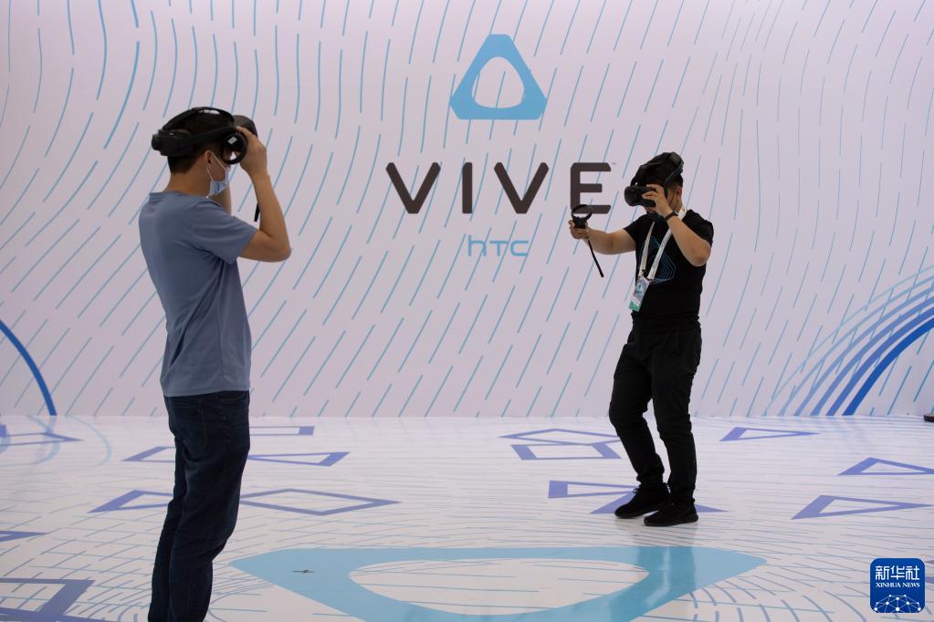 8月9日,在宏達通訊有限公司展區,工作人員調試設備。