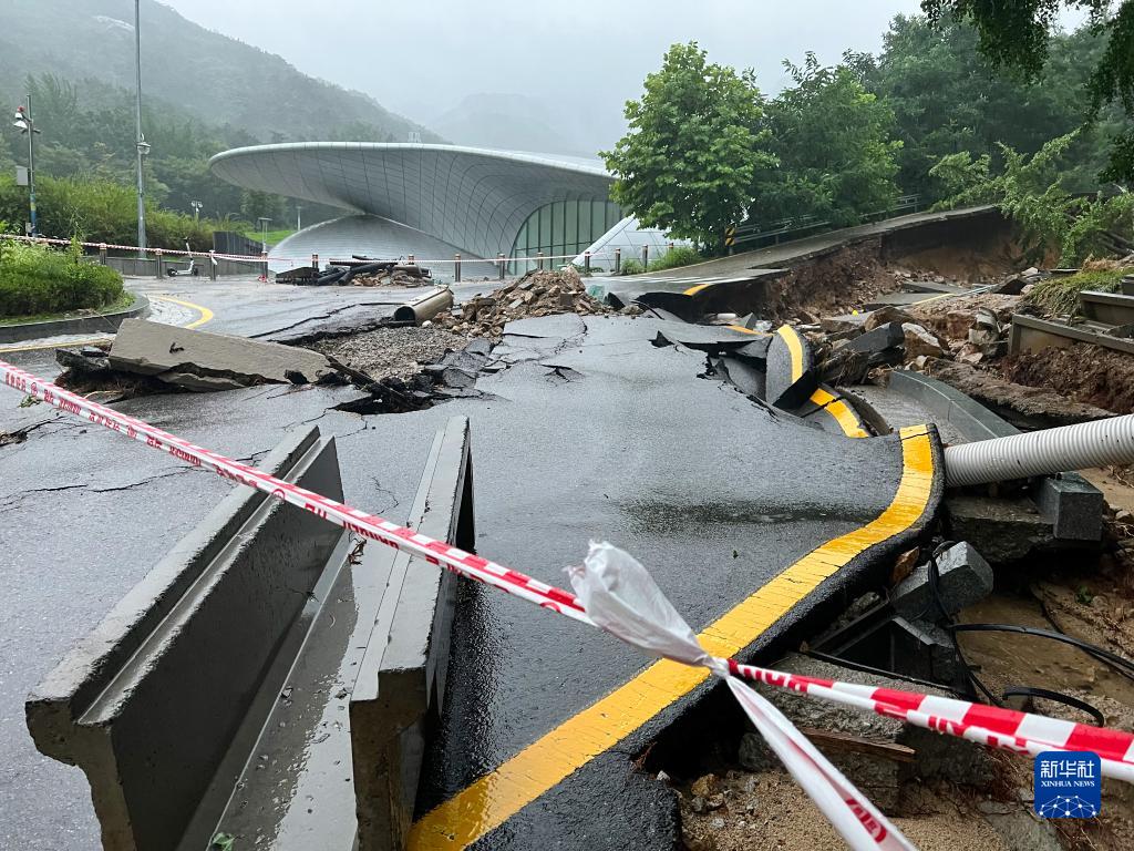 這是8月9日在韓國首爾大學(xué)拍攝的因遭遇強降雨而受損的道路(手機拍攝)。