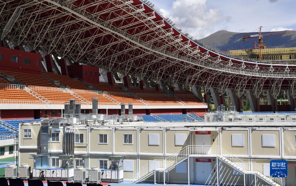 位于拉薩市柳梧新區拉薩市群眾文化體育中心內的方艙醫院(8月9日攝)。