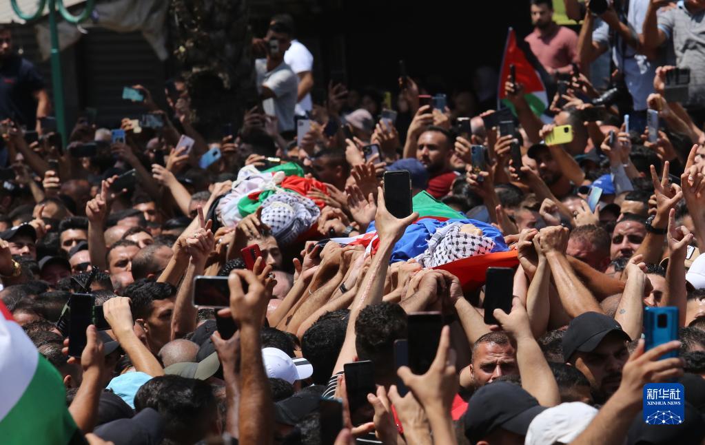 8月9日,人們在約旦河西岸城市納布盧斯參加被以色列軍隊打死的巴勒斯坦人的葬禮。