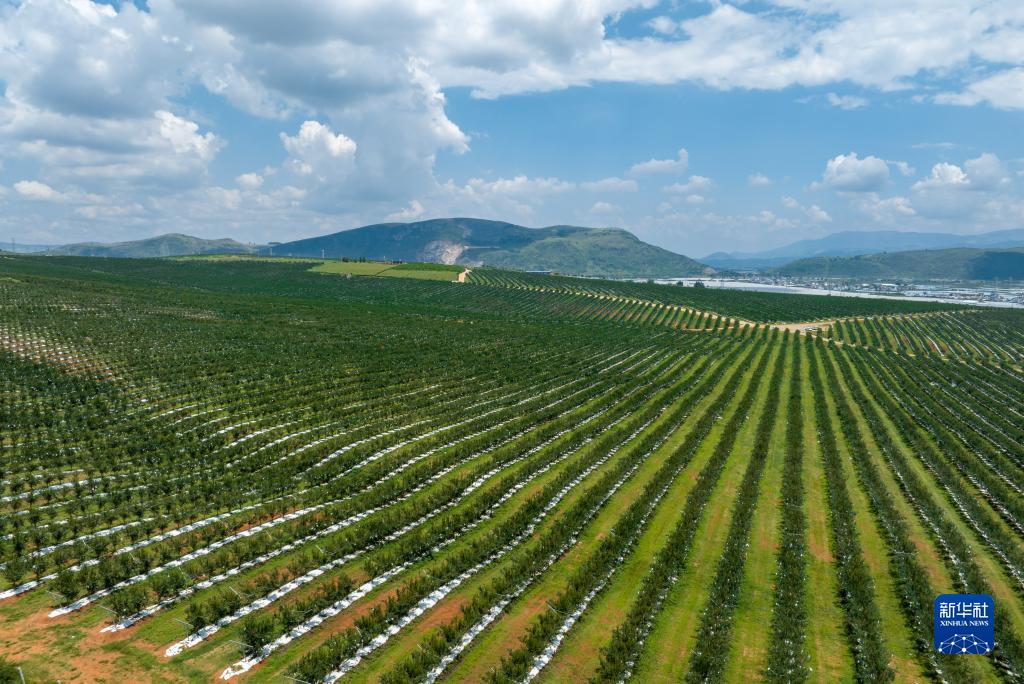 這是位于云南蒙自市草壩鎮的五八農業(yè)軟籽石榴種植基地(8月9日攝,無(wú)人機照片)。