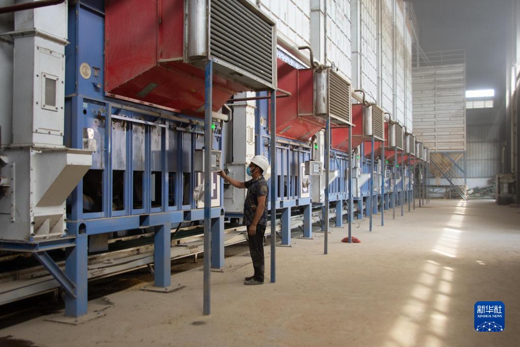 8月10日,在湖南省常德市漢壽縣毛家灘回族維吾爾族鄉牛路社區一糧食收購點(diǎn),工作人員查看烘干機運行情況。 新華社記者 柳王敏 攝