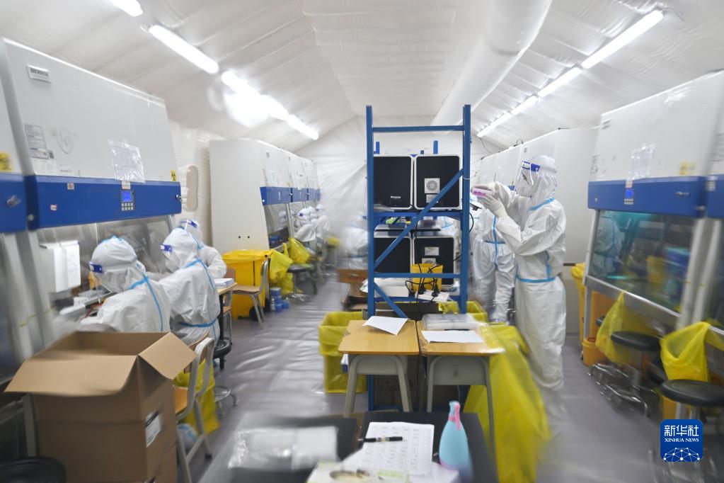 8月11日,廣東省援海南三亞核酸檢測隊的醫護人員在進(jìn)行核酸檢測工作。