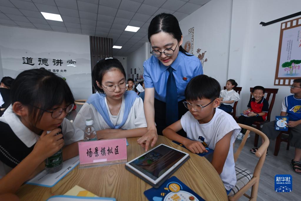 8月11日,湖州市南潯區檢察院第三檢察部副主任周思娟通過(guò)場(chǎng)景模擬游戲的形式,為黃泥兜村的孩子們普及未成年人保護知識。