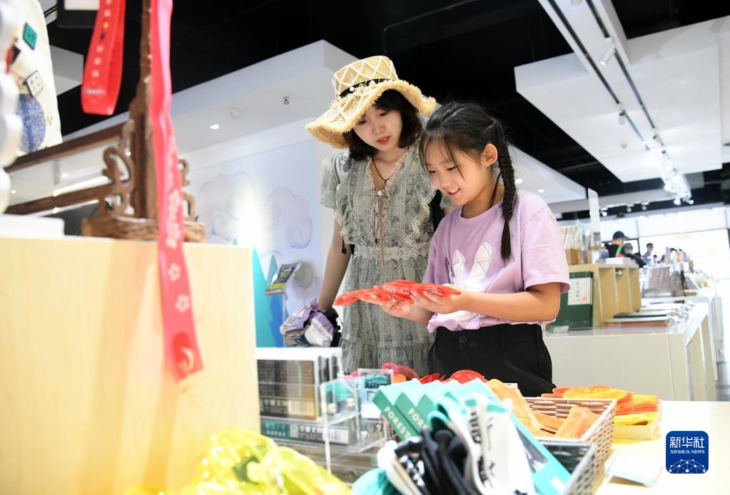 8月11日,一位小朋友和家長(cháng)在陜西歷史博物館文創(chuàng )商店挑選文創(chuàng )類(lèi)商品。