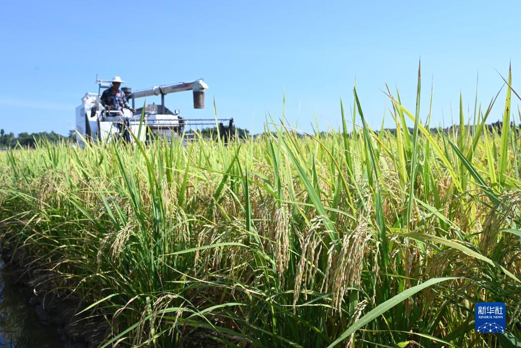 近日,水稻進(jìn)入收獲期,各地農民抓緊農時(shí)收獲、晾曬稻谷。