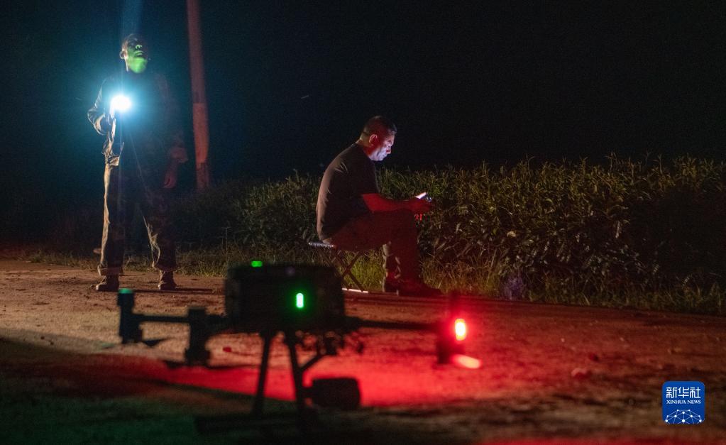 清晨,刁發(fā)興(右)使用無(wú)人機確認村莊附近的亞洲象位置(8月1日攝)。新華社記者 江文耀 攝
