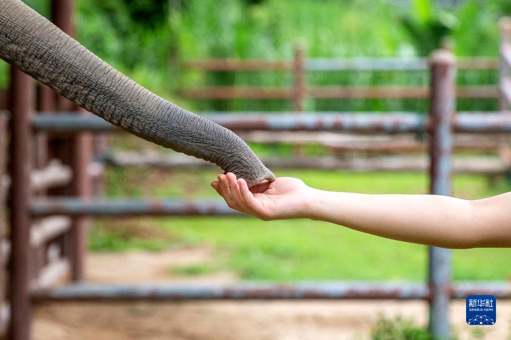 8月6日,在泰國南邦府“亞洲象之友”大象醫院,獸醫安慰一頭受傷的大象。