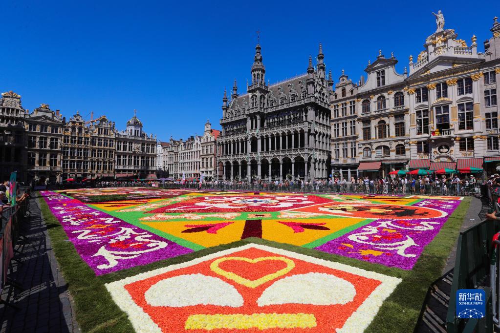 8月12日,民眾在比利時(shí)布魯塞爾大廣場(chǎng)參觀(guān)“鮮花地毯”。