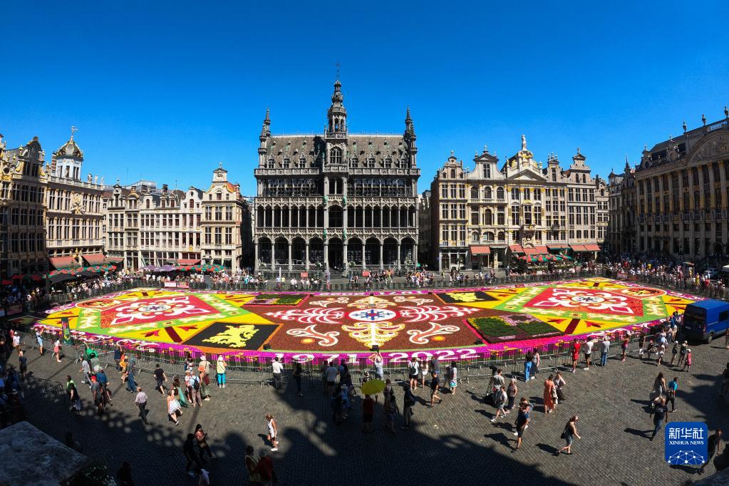 8月12日,民眾在比利時(shí)布魯塞爾大廣場(chǎng)參觀(guān)“鮮花地毯”。