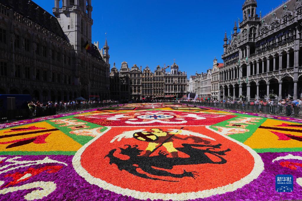 8月12日,民眾在比利時(shí)布魯塞爾大廣場(chǎng)參觀(guān)“鮮花地毯”。